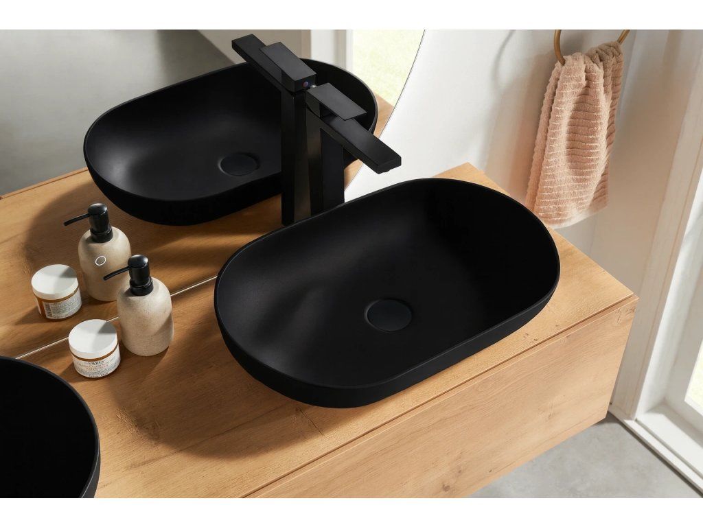 CERANO - Umyvadlo z litého mramoru Lyra - na desku - černá matná - 54x34 cm