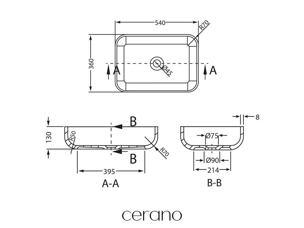 CERANO - Umyvadlo z litého mramoru Ora - na desku - černá matná - 54x36 cm