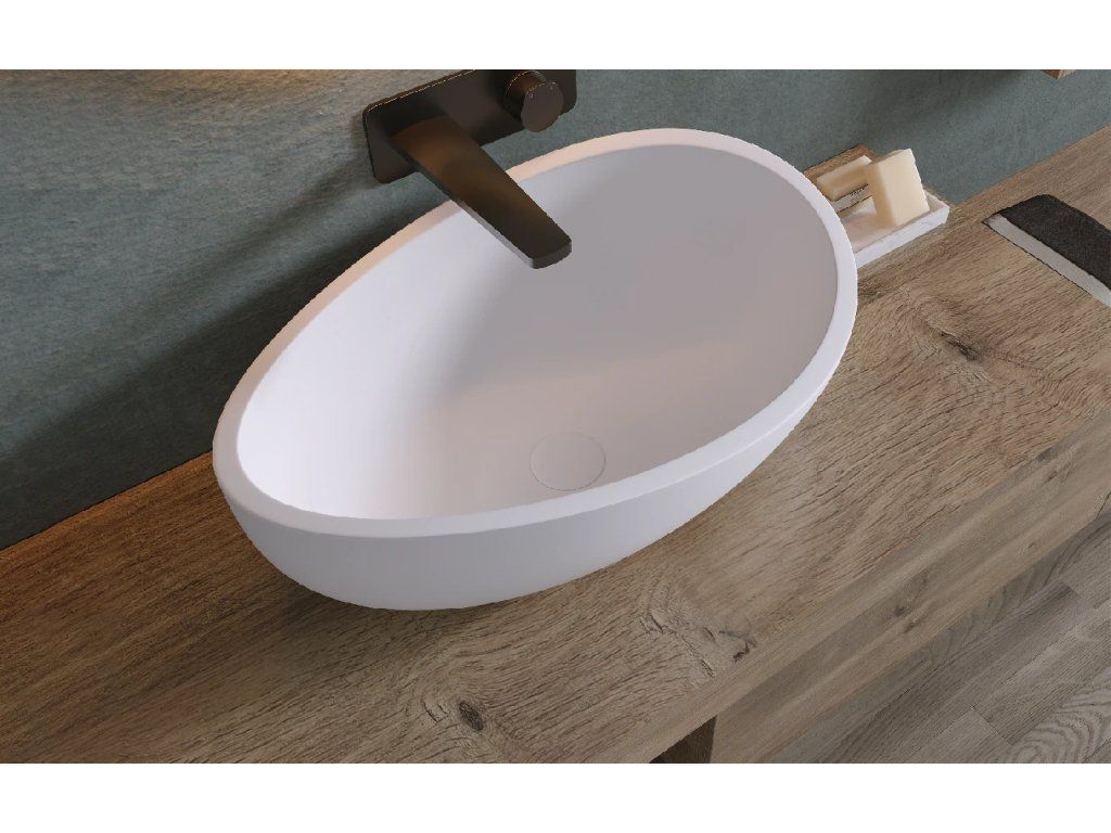 CERANO - Umyvadlo z litého mramoru Valentino - na desku - bílá matná - 60x37 cm