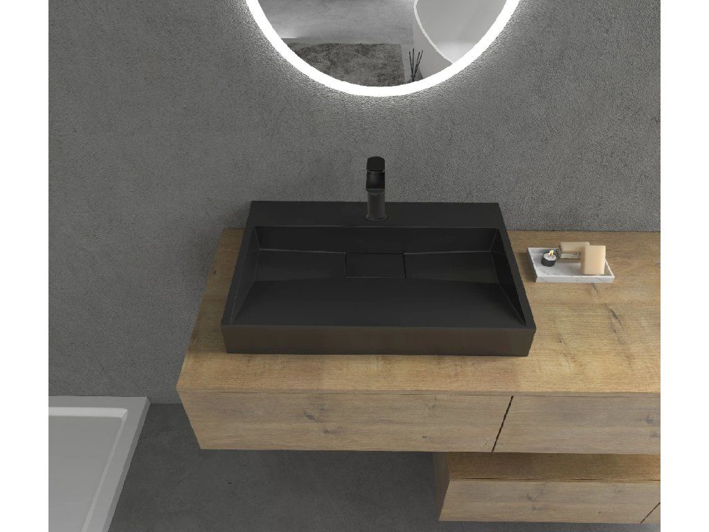 CERANO - Umyvadlo z litého mramoru Vita - nástěnné i na desku - otvor pro baterii - černá matná - 60x37 cm