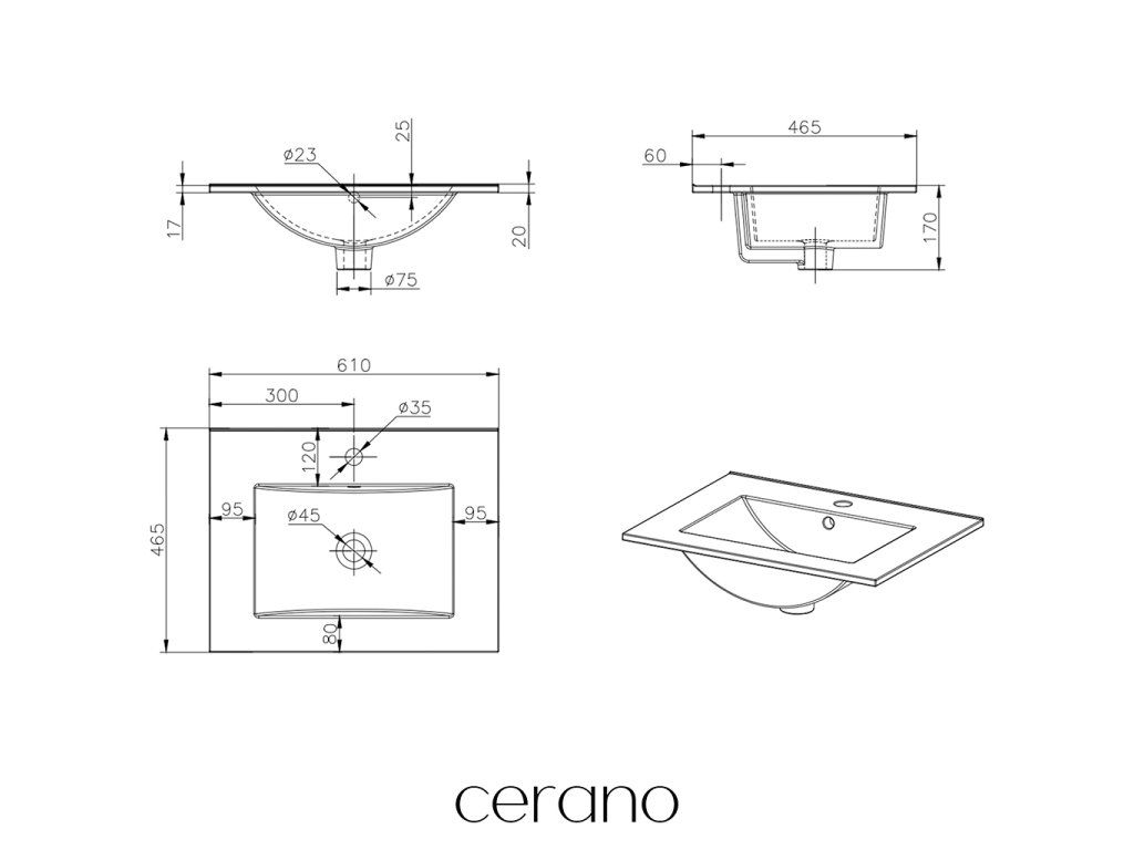 CERANO - Umyvadlo keramické Todo - nábytkové - bílá lesklá - 61x46,5 cm