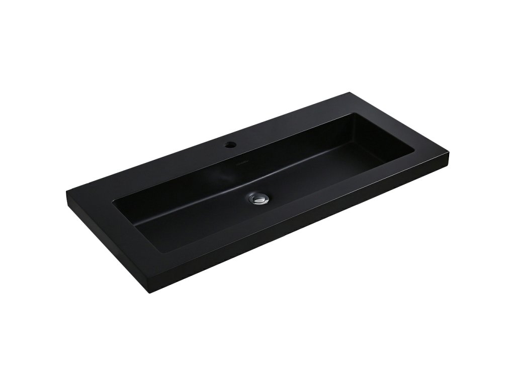 CERANO - Umyvadlo z litého mramoru Ovo - s přepadem - černá matná - 100,5x46,3 cm
