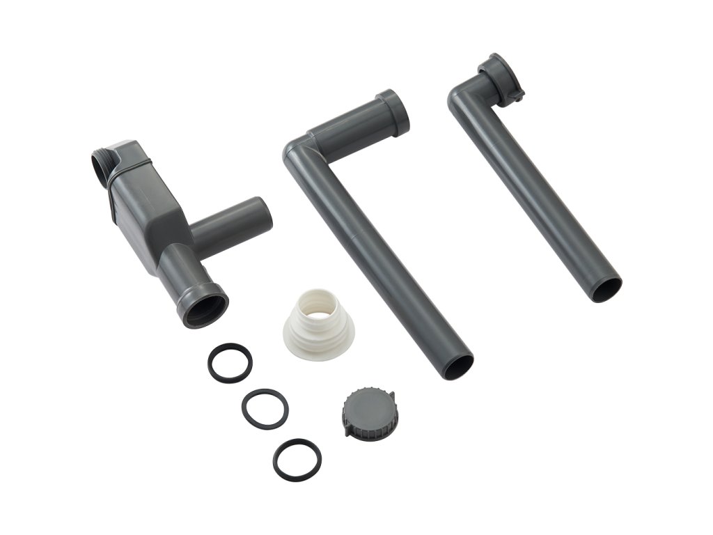 Součástí balení je praktická gumová přechodka, která umožňuje snadné napojení na odpadní potrubí o průměru 32 až 50 mm. Díky tomu je sifon univerzálně kompatibilní s většinou běžných instalací.