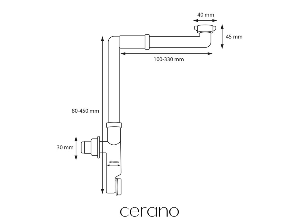 CERANO - Nábytkový sifon, místošetřící, se zápachovou zátkou - 5/4", odpad 32-50 mm - šedá