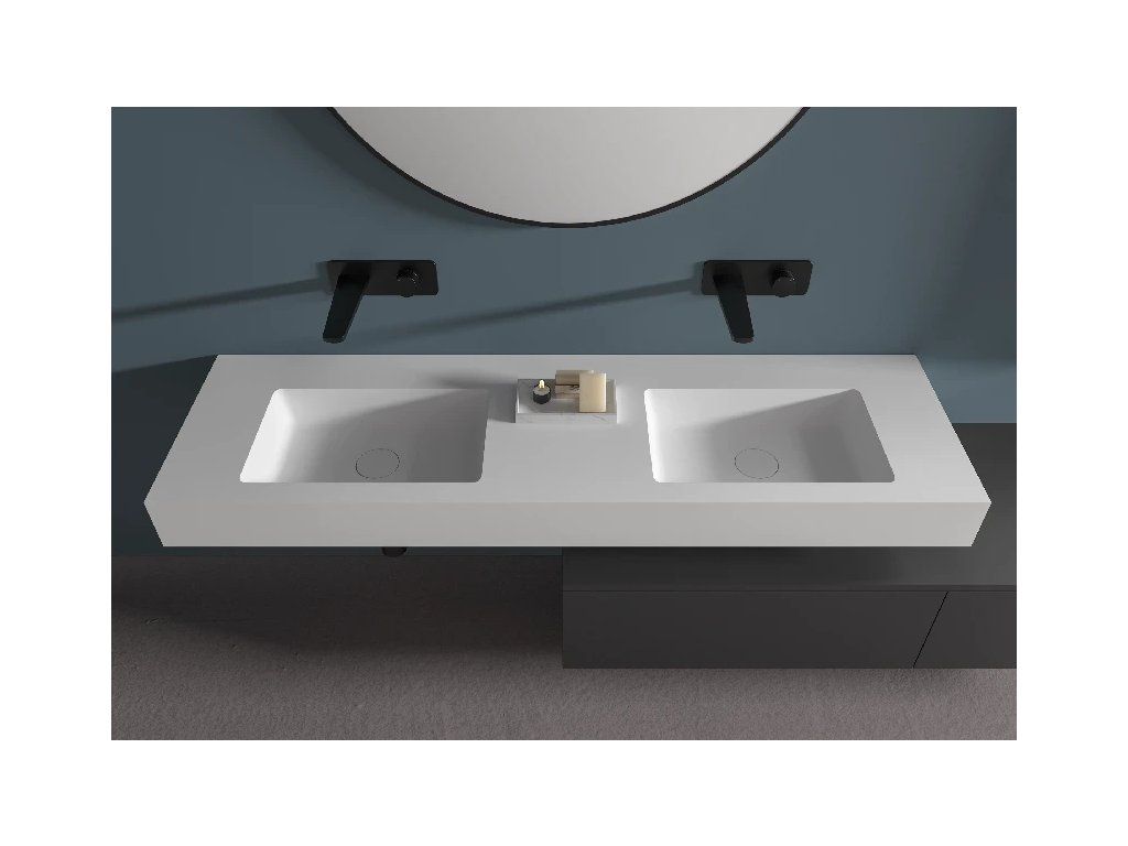 CERANO - Umyvadlo z litého mramoru Geminia - nástěnné - bílá matná - 163x45 cm