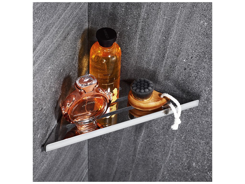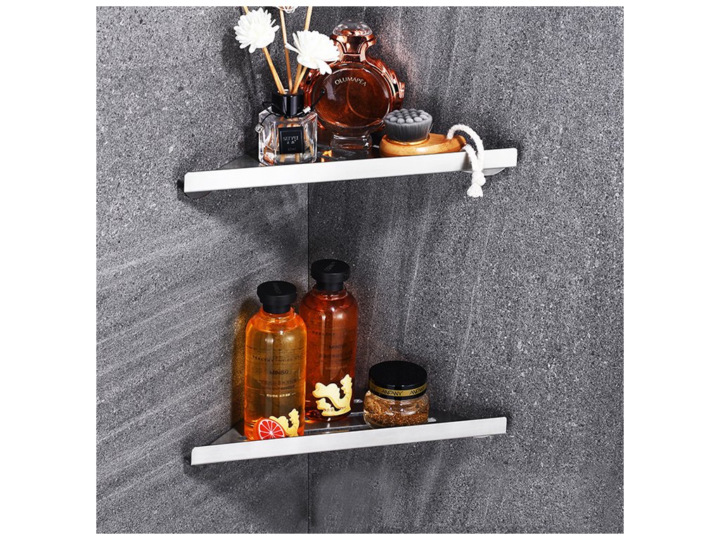 Minimalistický design a maximální praktičnost. Přesně to nabízí rohová nástěnná koupelnová police Alto. Díky svému kompaktnímu tvaru skvěle využívá prostor v koupelně a je ideální pro umístění do sprchového koutu. Poskytuje dostatek místa pro sprchové gely, šampony a další hygienické potřeby, přičemž výřezy na odtok vody zabraňují hromadění vlhkosti a usnadňují údržbu.