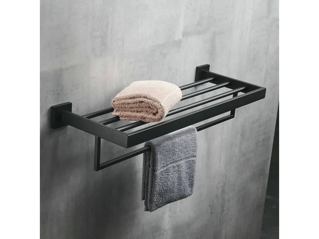 CERANO - Nástěnná polička s držákem na ručníky Alto - černá matná