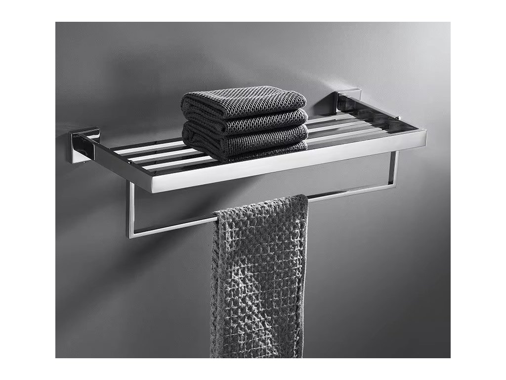 Nástěnná polička s držákem na ručníky Alto je vyrobena z nerezové oceli, díky čemuž disponuje vysokou odolnost vůči vlhkosti a korozivním účinkům. Její design je jednoduchý, ale elegantní a velmi praktický.