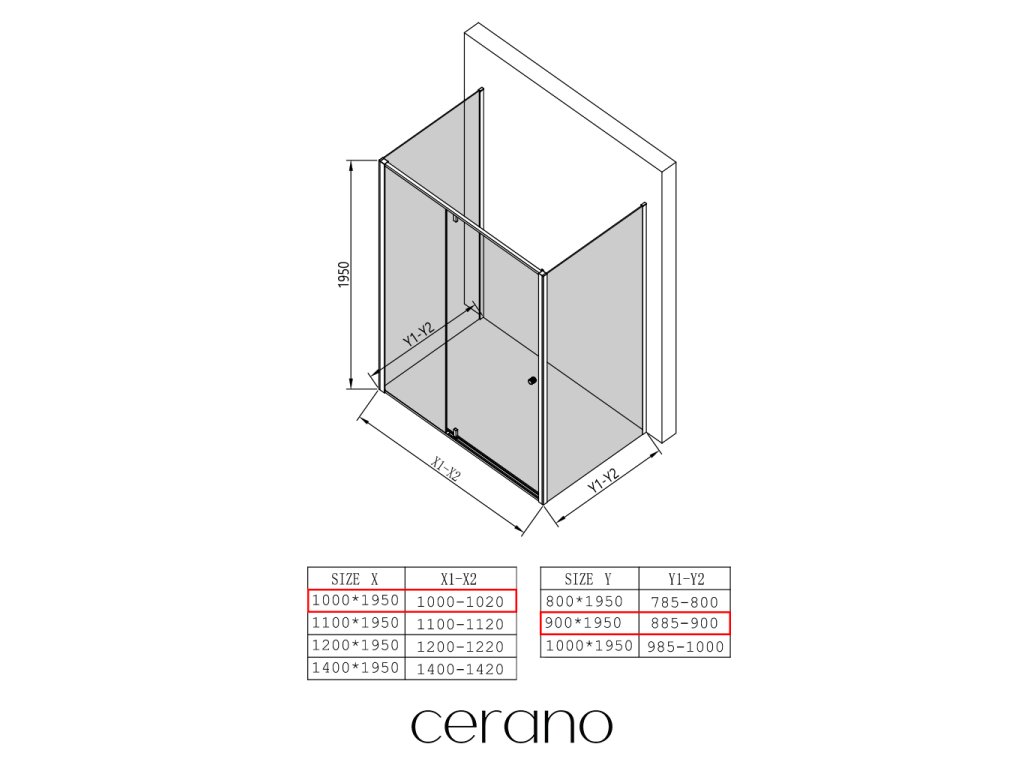 V rámci této série nabízíme širokou škálu rozměrů, abychom uspokojili různé potřeby našich zákazníků. Většina sprchových koutů, dveří a zástěn značky CERANO je navržena tak, aby byla kompatibilní se sprchovými vaničkami CERANO ve stejných rozměrech, což zajišťuje bezproblémovou instalaci a dokonalé sladění.