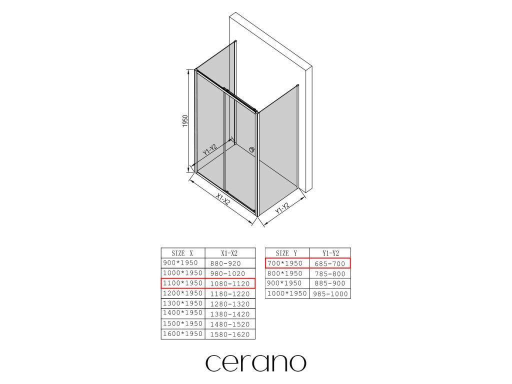 V rámci této série nabízíme širokou škálu rozměrů, abychom uspokojili různé potřeby našich zákazníků. Všechny sprchové kouty, dveře a zástěny značky CERANO jsou plně kompatibilní se sprchovými vaničkami CERANO ve stejných rozměrech, což zajišťuje bezproblémovou instalaci a dokonalé sladění. Sprchový kout lze navíc instalovat flexibilně – buď na odpovídající sprchovou vaničku, nebo přímo na podlahu podle vašich preferencí a možností koupelny.