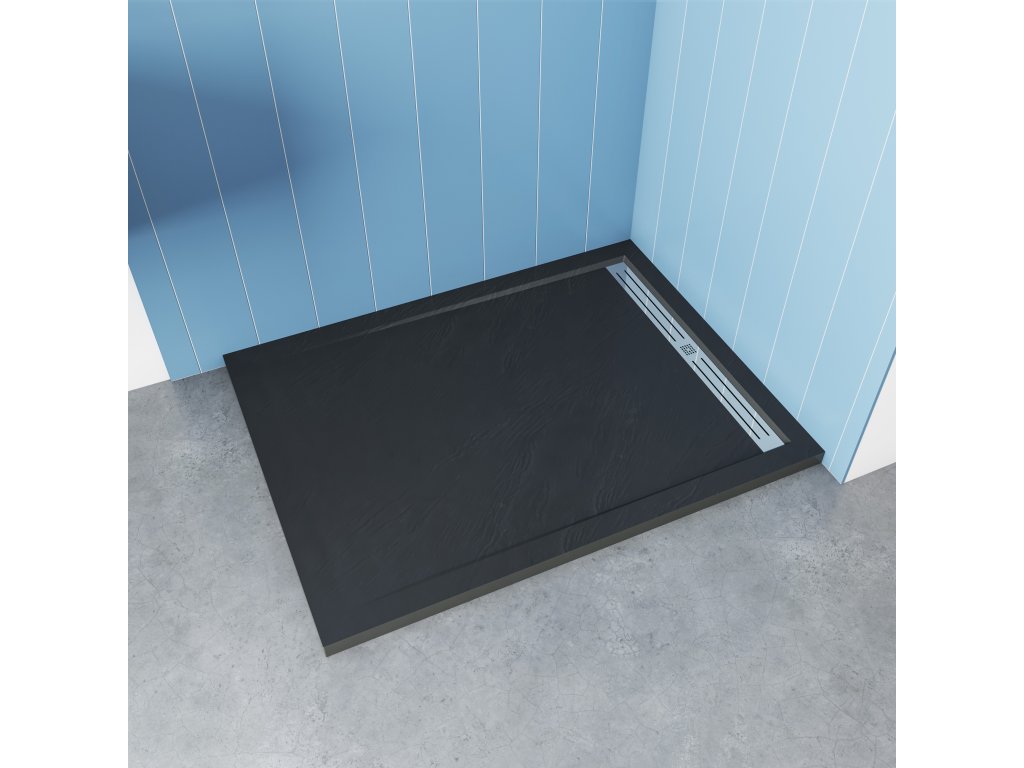 CERANO - Sprchová vanička obdélníková Docia - SMC/minerální kompozit - sifon + nerezový kryt - strukturovaná černá matná - 100x80 cm