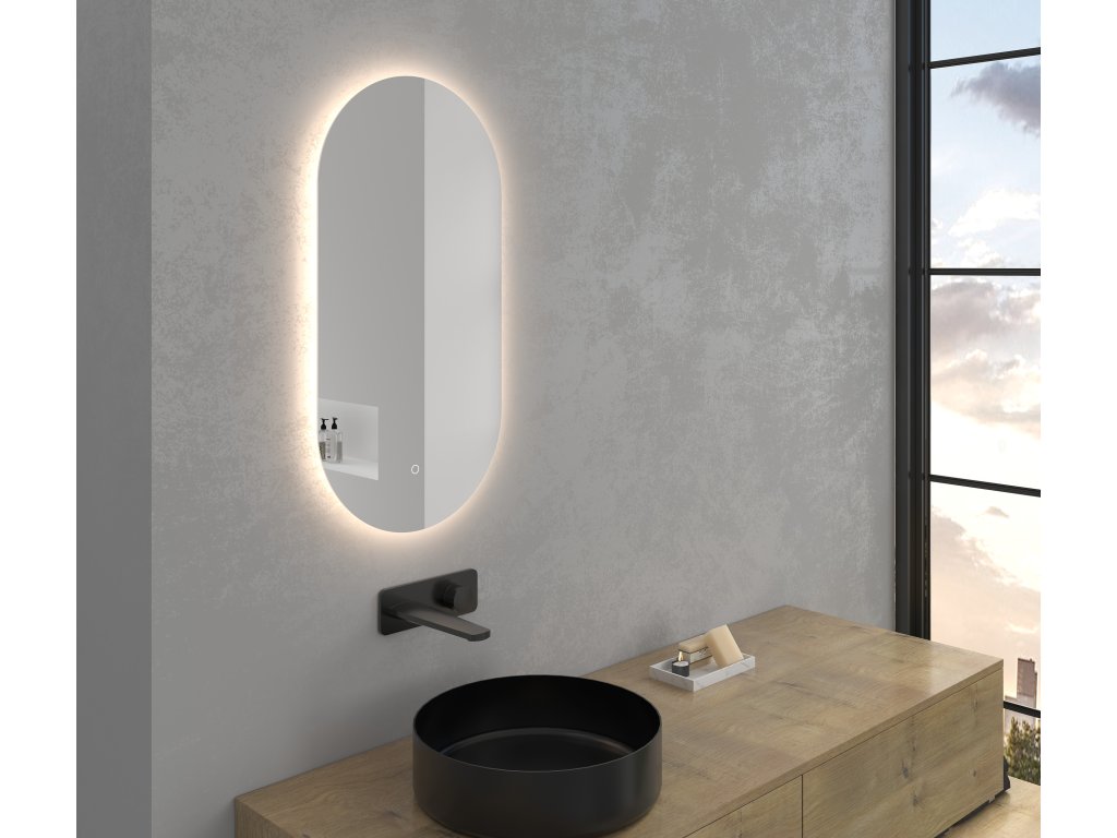 Zrcadlo je vybaveno LED osvětlením s nastavitelnou barvou světla – od 3000 K (teplá) do 6000 K (studená). Přepínání barev jednoduše ovládáte dotykovým tlačítkem na ploše zrcadla. Poskytuje intenzivní a jasné světlo pro detailní péči i příjemné, jemné osvětlení pro relaxaci. Díky širokému rozsahu teploty barev tak snadno přizpůsobíte atmosféru aktuální potřebě.