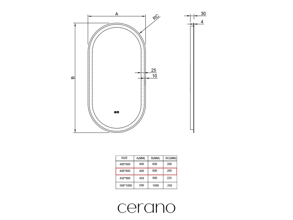 CERANO - Koupelnové LED zrcadlo Ayvo - 40x80 cm