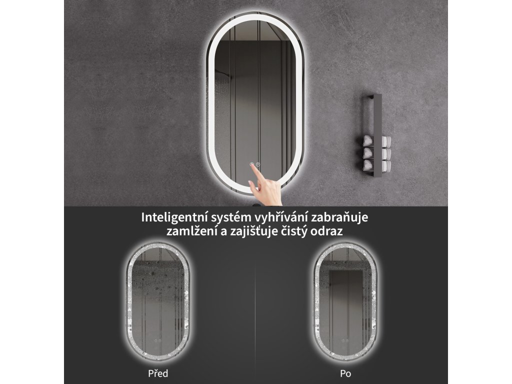 Zrcadlo je vybaveno LED osvětlením s nastavitelnou barvou světla – od 2800K (teplá) do 6000K (studená). Poskytuje intenzivní a jasné osvětlení pro detailní péči i příjemné a jemné světlo pro relaxaci. Díky širokému rozsahu teploty barev lze přizpůsobit atmosféru dle potřeby.