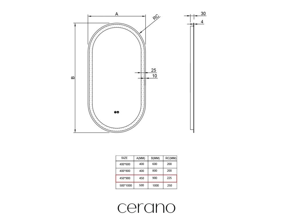 CERANO - Koupelnové LED zrcadlo Ayvo - 45x90 cm