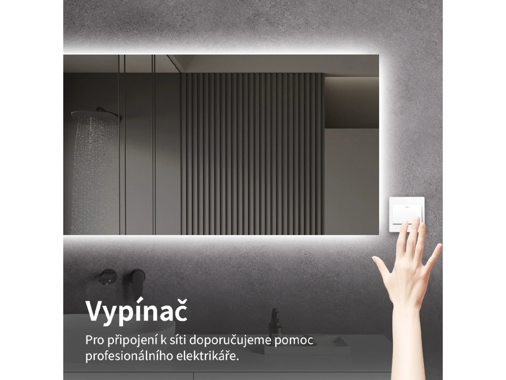 Osvětlení zrcadla lze zapnout skrze vypínač na zdi. Je nutné napojit jej přímo na domácí elektrickou síť. Před instalací doporučujeme obrátit se na kvalifikovaného elektrikáře, který zajistí správné a bezpečné připojení.
