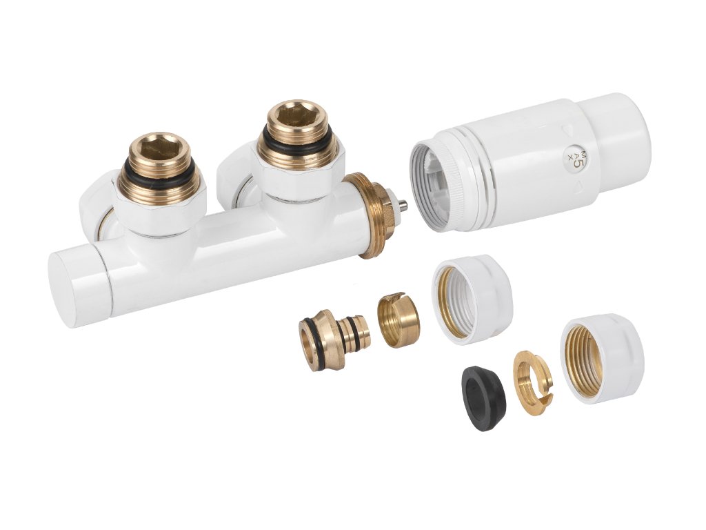 - Spojuje přívod a zpátečku (tedy oba otvory radiátoru) do jednoho kompaktního kusu.