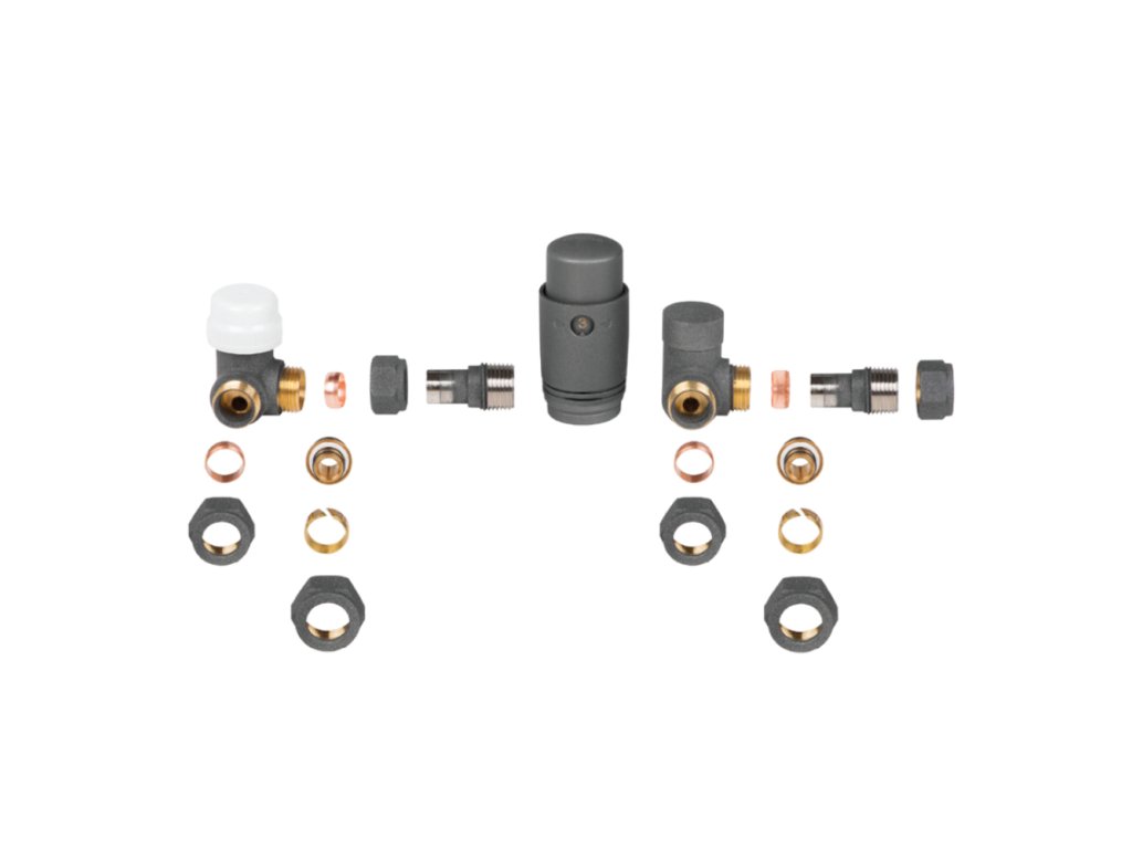 CERANO - Připojovací sada radiátorových ventilů s termostatickou hlavicí - rohová - šedá matná