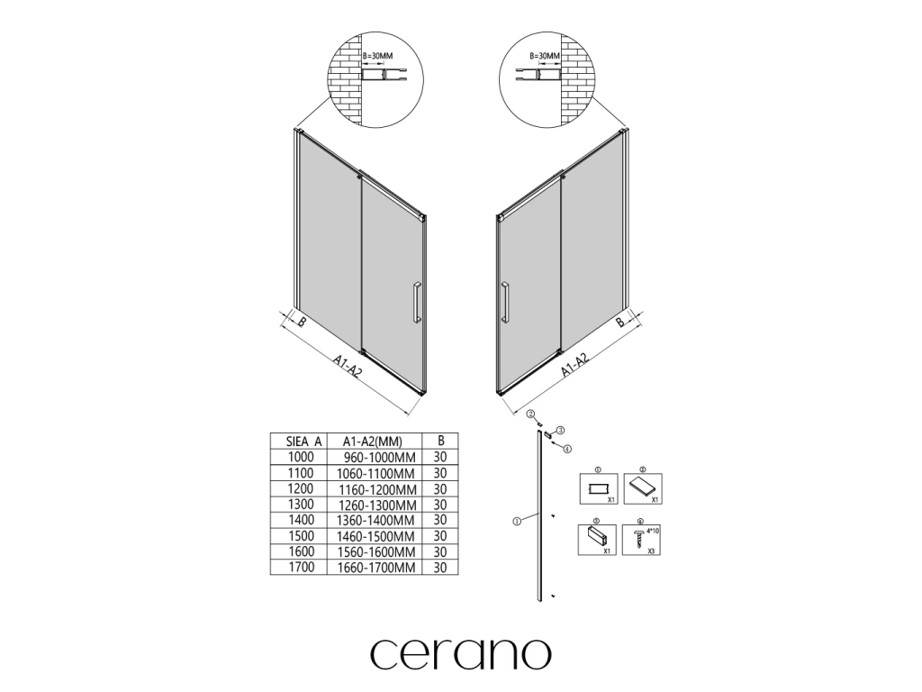 Tento rozšiřující profil značky Cerano je navržen pro snadné přizpůsobení sprchových dveří Lantono do širších stavebních otvorů.