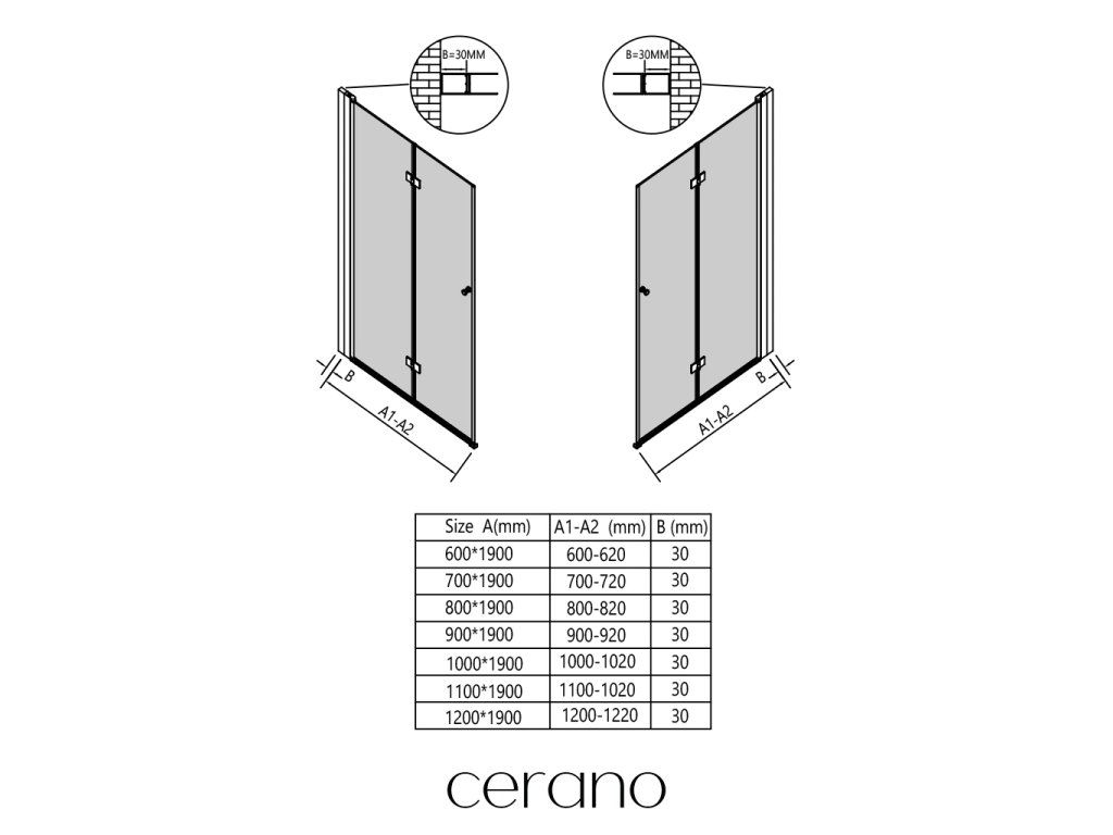 Tento rozšiřující profil značky Cerano je navržen pro snadné přizpůsobení sprchových dveří Volpe do širších stavebních otvorů.