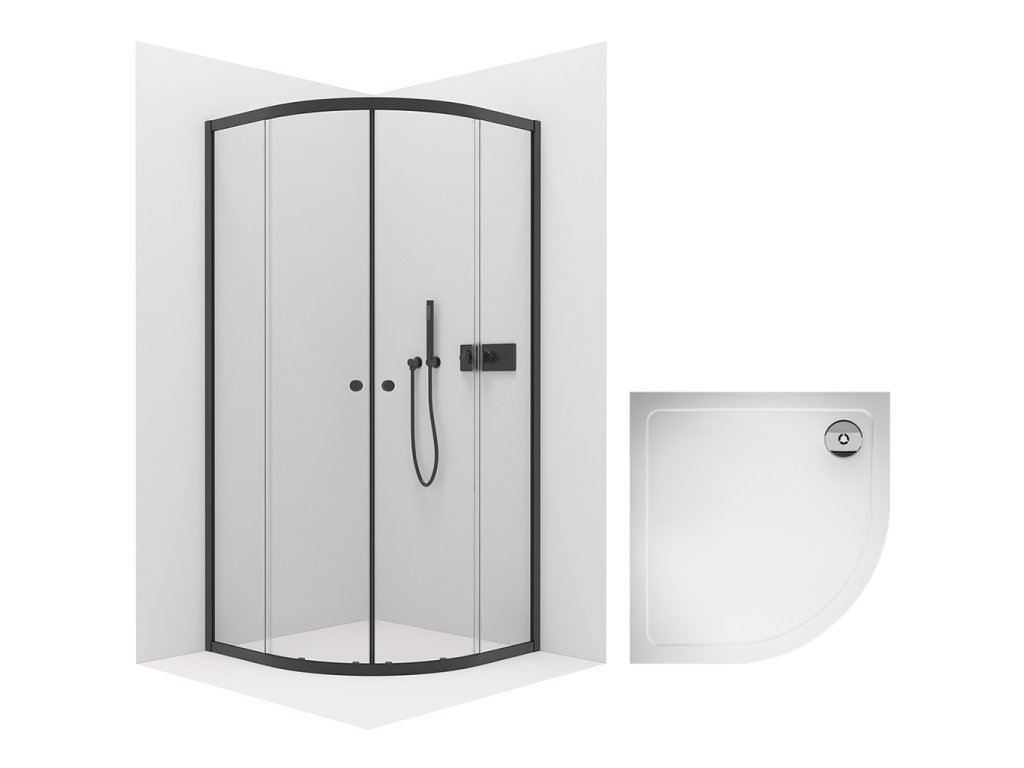 CERANO – Sprchový kout Orso L/P 5 mm - černá cm + CERANO - Sprchová vanička Piato -bílá lesklá - 100x100 cm