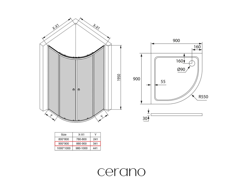 V rámci této série nabízíme tři osvědčené rozměry, které odpovídají nejčastějším požadavkům na uspořádání moderní koupelny. Tento rohový sprchový kout je navržen s důrazem na dokonalé sladění s půlkruhovými sprchovými vaničkami CERANO stejného rozměru, což usnadňuje instalaci a vytváří jednotný, harmonický vzhled. Vysoká kompatibilita zároveň eliminuje potřebu složitých úprav nebo přizpůsobení. Díky flexibilní montáži jej můžete snadno nainstalovat buď na odpovídající sprchovou vaničku, nebo přímo na připravenou podlahu s odtokovým systémem – podle vašich stavebních možností a estetických preferencí.