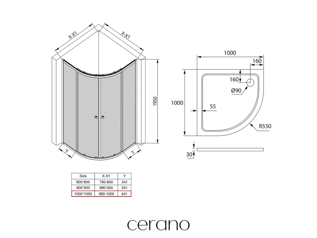 V rámci této série nabízíme tři osvědčené rozměry, které odpovídají nejčastějším požadavkům na uspořádání moderní koupelny. Tento rohový sprchový kout je navržen s důrazem na dokonalé sladění s půlkruhovými sprchovými vaničkami CERANO stejného rozměru, což usnadňuje instalaci a vytváří jednotný, harmonický vzhled. Vysoká kompatibilita zároveň eliminuje potřebu složitých úprav nebo přizpůsobení. Díky flexibilní montáži jej můžete snadno nainstalovat buď na odpovídající sprchovou vaničku, nebo přímo na připravenou podlahu s odtokovým systémem – podle vašich stavebních možností a estetických preferencí.
