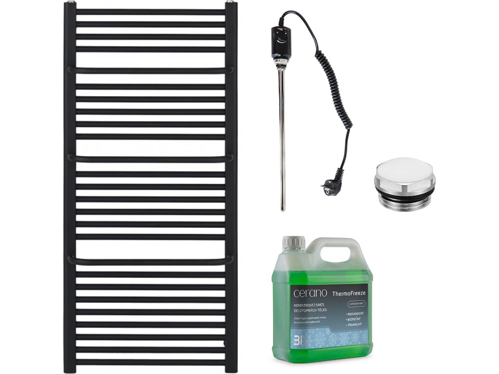 CERANO - Koupelnový elektrický radiátorový set Antonio - 600W - černá matná - 1180x550 mm