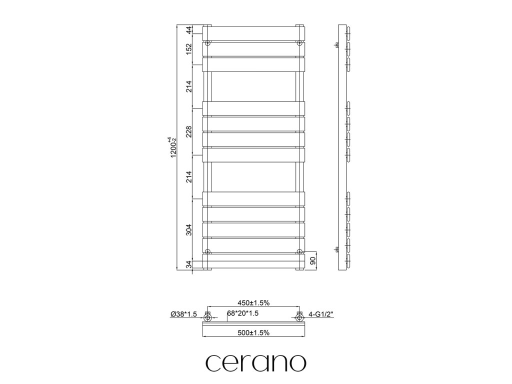 Standartní připojení radiátoru je 1/2" , což zajišťuje kompatibilitu s ventily a přípojnými sadami Cerano ,i od jiných výrobců. Ujistěte se, že všechny součásti odpovídají tomuto průměru, aby byl zajištěn bezpečný a efektivní provoz.