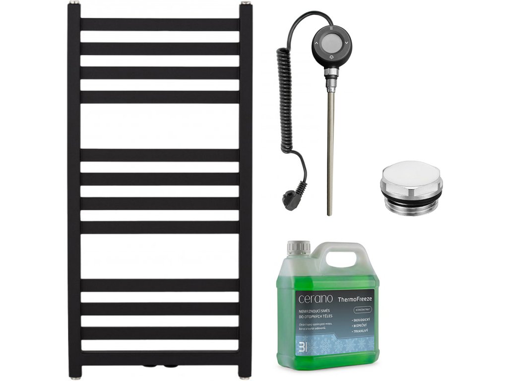 CERANO - Koupelnový elektrický radiátorový set Fulgidus - WIFI - 600W - černá matná - 880x430 mm