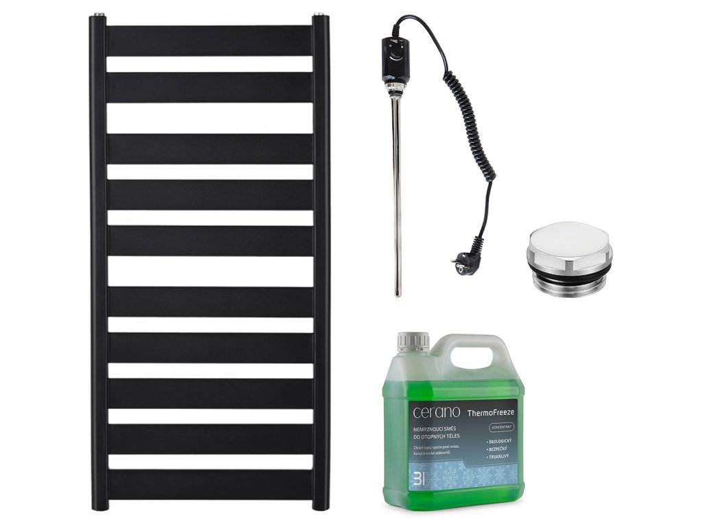 CERANO - Koupelnový elektrický radiátorový set Marco - 600W - černá matná - 1125x550 mm