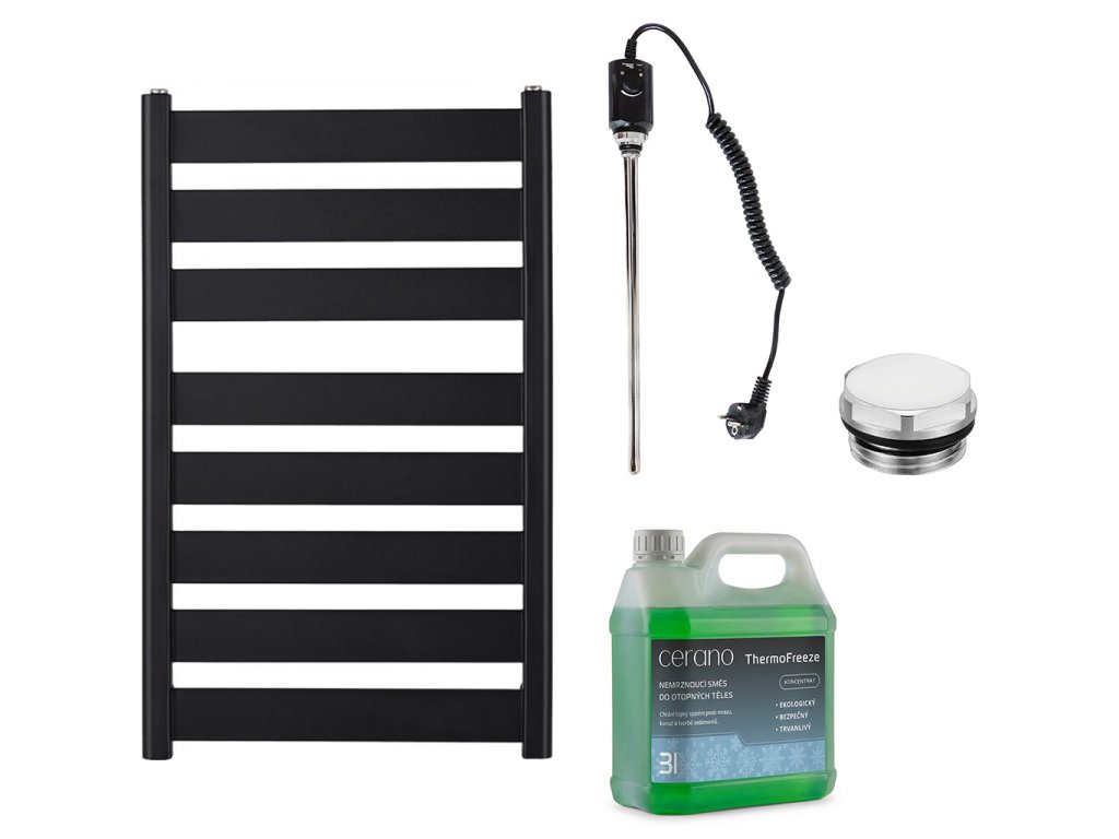 CERANO - Koupelnový elektrický radiátorový set Marco - 600W - černá matná - 920x550 mm