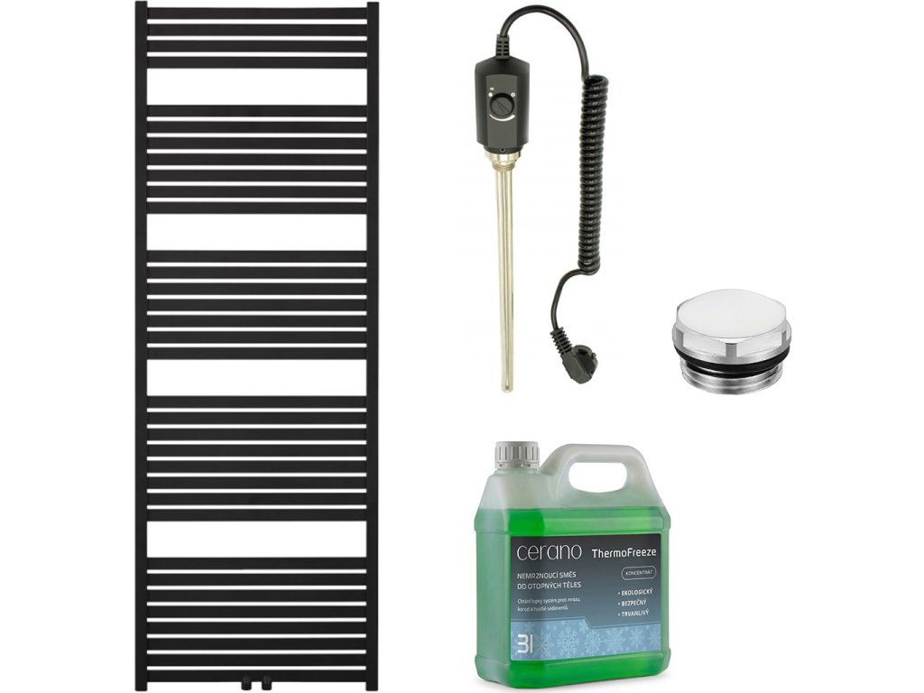CERANO - Koupelnový elektrický radiátorový set Vincenzo - 900W - černá matná - 1690x600 mm