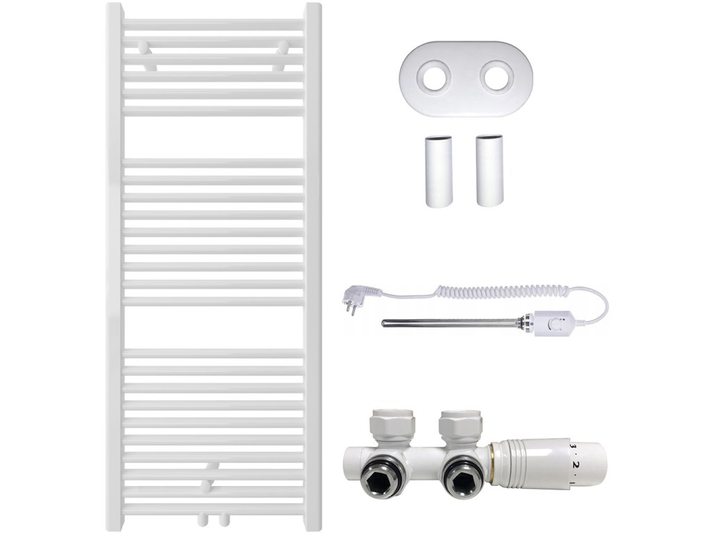 CERANO - Koupelnový radiátorový set Lincoln - kombinované výtápění, termo tyč - středové připojení 50 mm - 366W - bílá lesklá - 1200x500 mm
