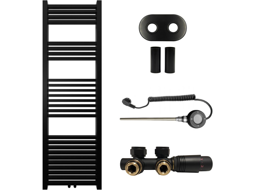 CERANO - Koupelnový radiátorový set Franko - kombinované výtápění, wifi tyč - středové připojení 50 mm - 514W - černá matná - 1600x500 mm