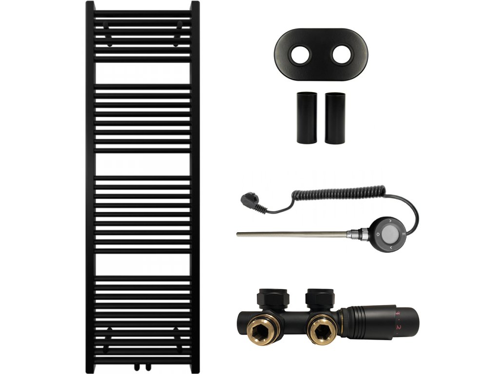 CERANO - Koupelnový radiátorový set Lincoln - kombinované výtápění, wifi tyč - středové připojení 50 mm - 484W - černá matná - 1600x500 mm