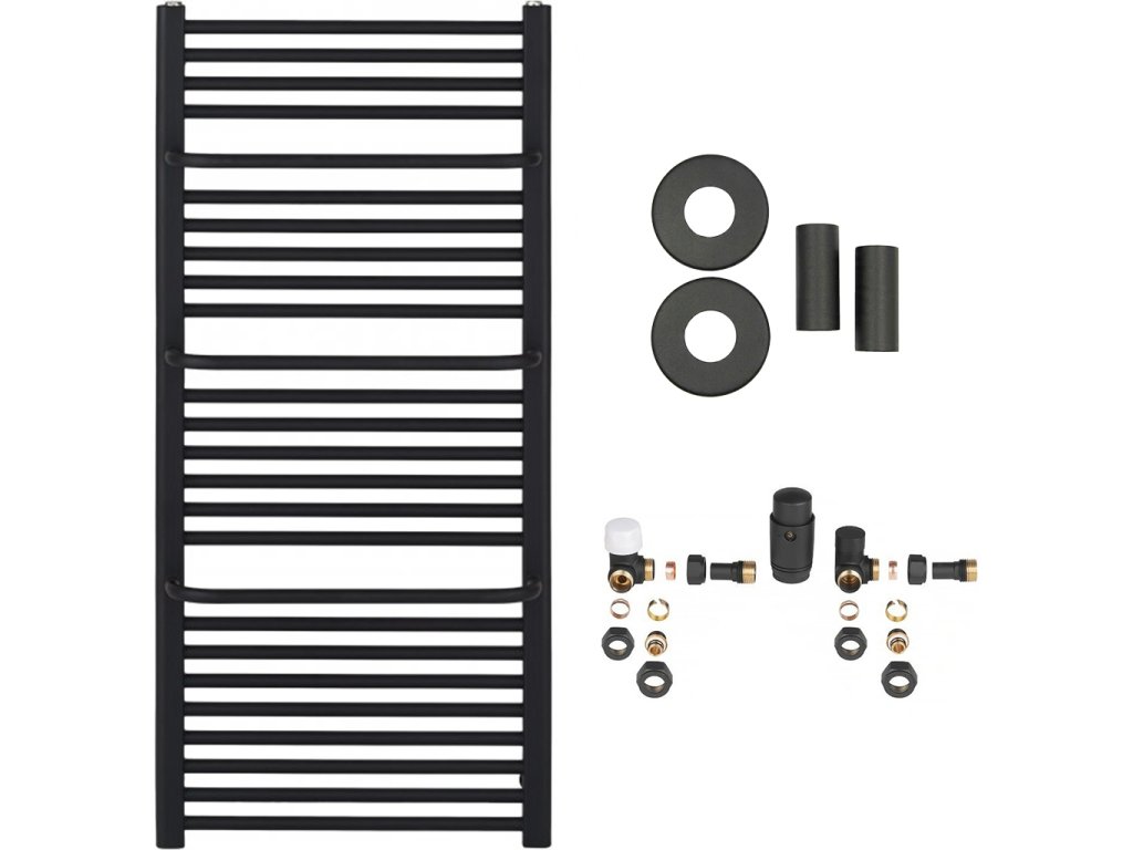 CERANO - Koupelnový radiátorový set Antonio - ústřední vytápění - boční připojení - 857W - černá matná - 1460x550 mm