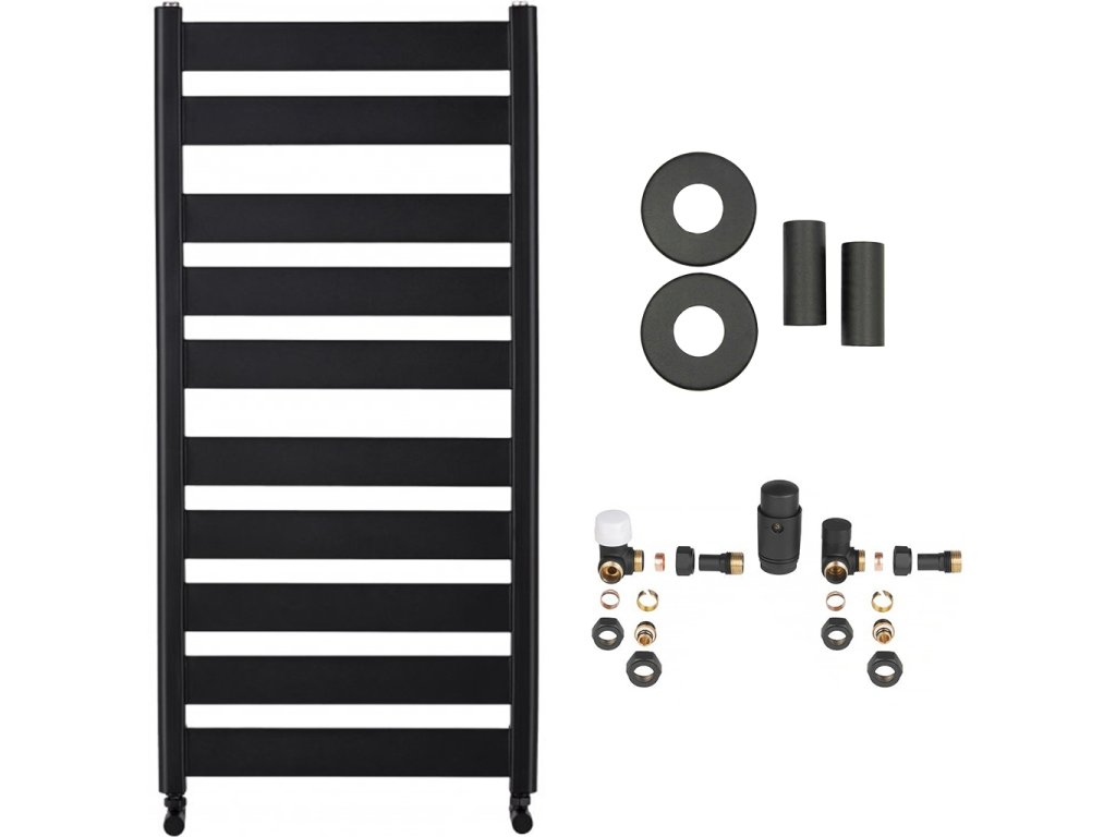 CERANO - Koupelnový radiátorový set Marco - ústřední vytápění - boční připojení - 816W - černá matná - 1125x550 mm