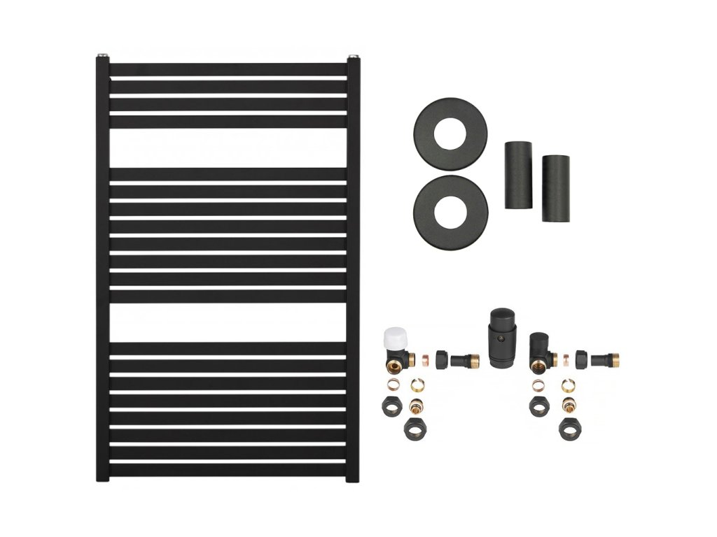 CERANO - Koupelnový radiátorový set Vincenzo - ústřední vytápění - boční připojení - 400W - černá matná - 970x600 mm