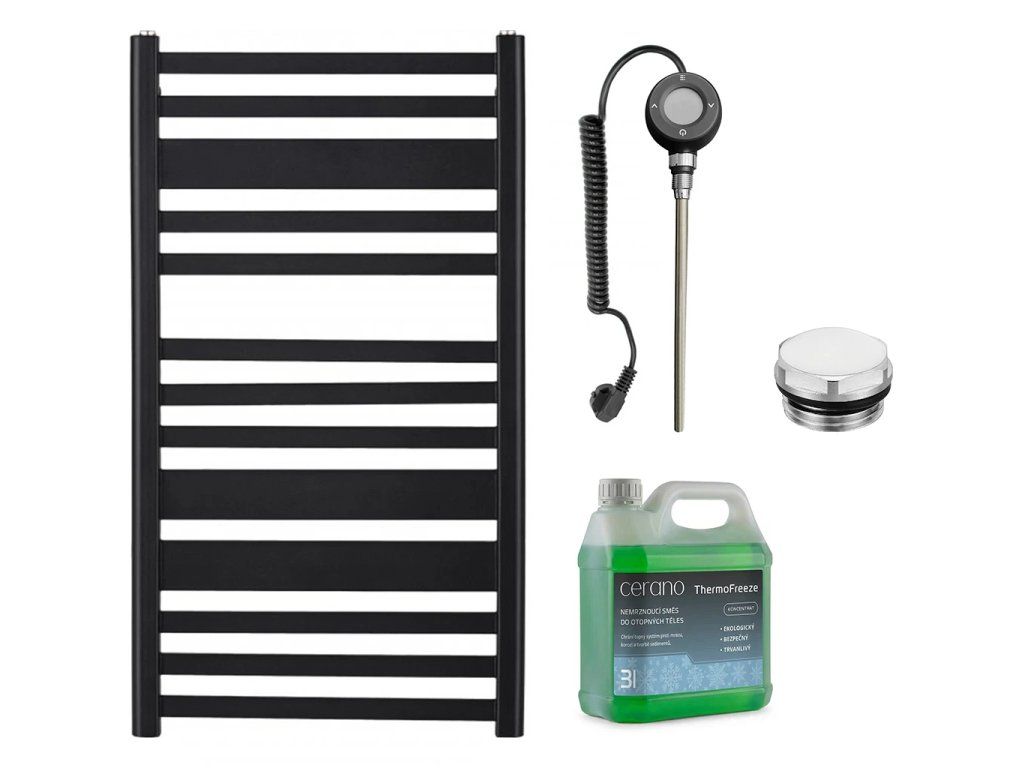 CERANO - Koupelnový elektrický radiátorový set Enrico - WIFI - 300W - černá matná - 970x550 mm