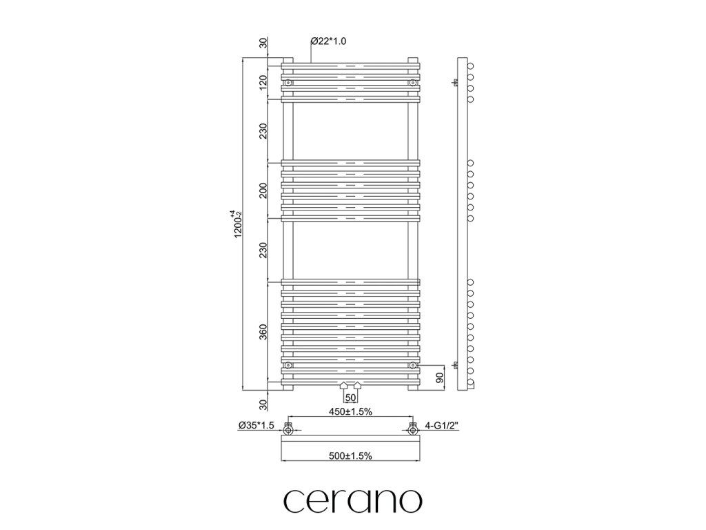 Standartní připojení radiátoru je 1/2" , což zajišťuje kompatibilitu s ventily a přípojnými sadami Cerano ,i od jiných výrobců. Ujistěte se, že všechny součásti odpovídají tomuto průměru, aby byl zajištěn bezpečný a efektivní provoz.