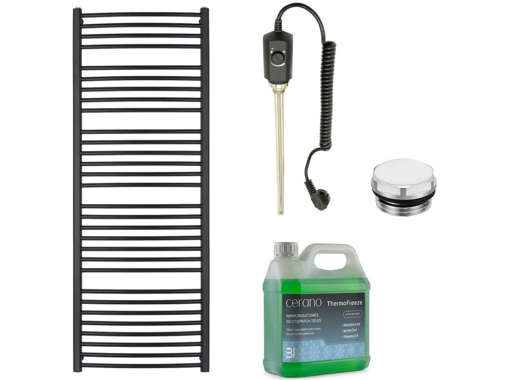 CERANO - Koupelnový elektrický radiátorový set Stefano - 900W - černá matná - 1710x650 mm