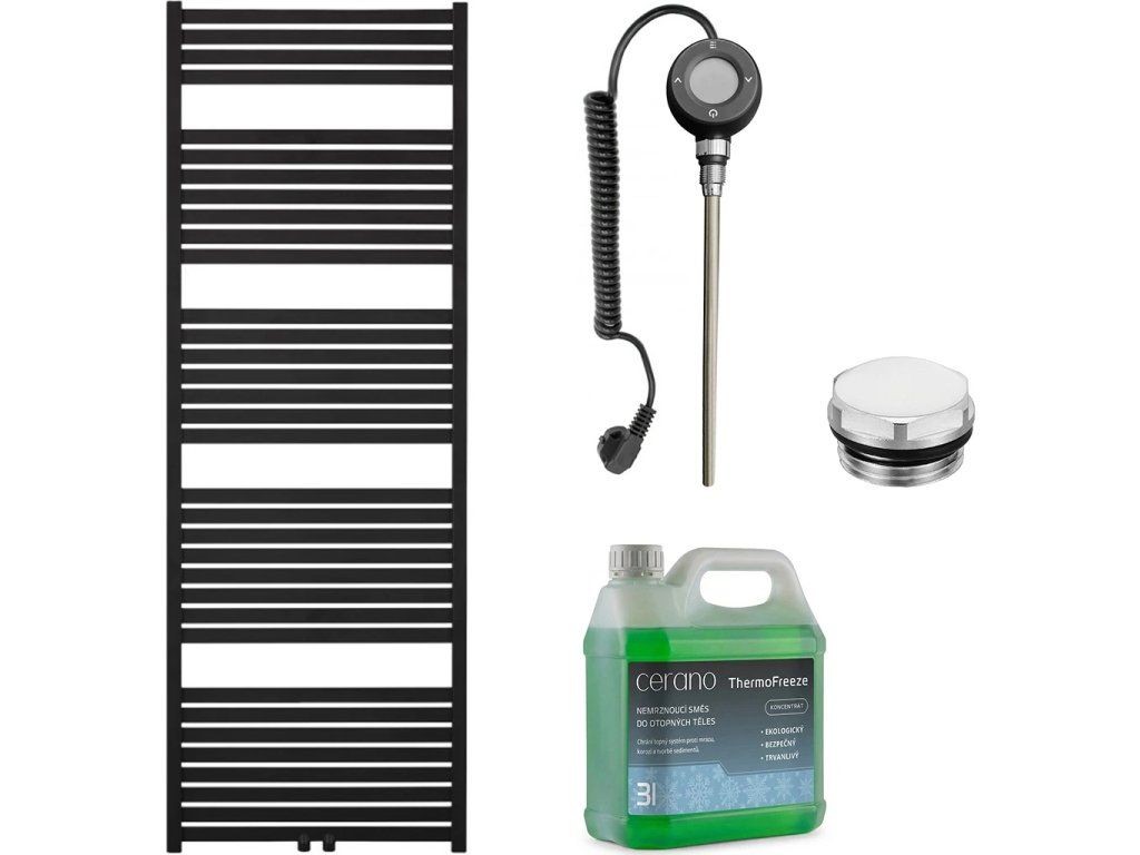 CERANO - Koupelnový elektrický radiátorový set Vincenzo - WIFI - 600W - černá matná - 1690x600 mm