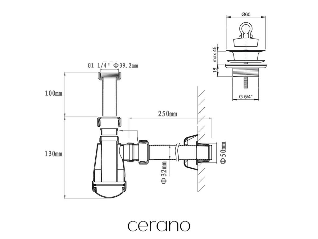 Výrobek je vybaven standardním závitovým připojením 5/4", které zajišťuje kompatibilitu umyvadlových výpustí a sifonů a zároveň usnadňuje jejich vzájemné připojení.