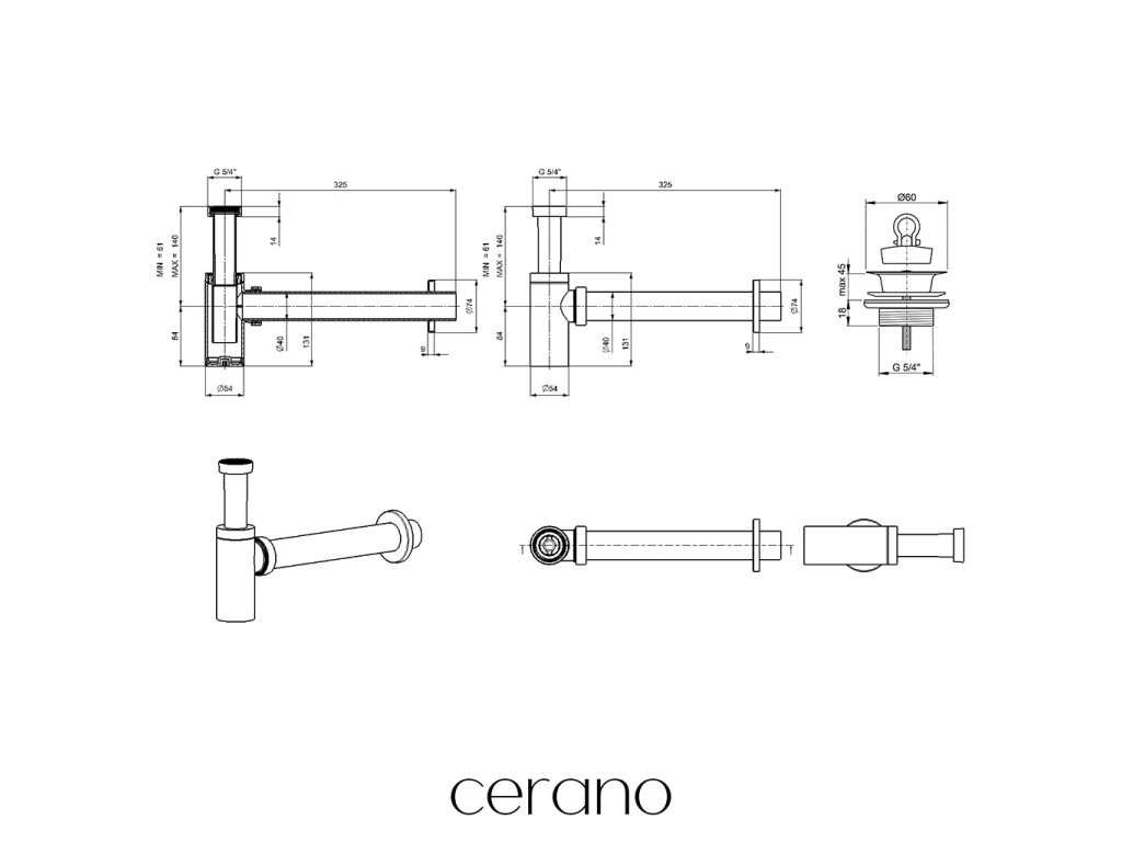 Výrobek je vybaven standardním závitovým připojením 5/4", které zajišťuje kompatibilitu umyvadlových výpustí a sifonů a zároveň usnadňuje jejich vzájemné připojení.