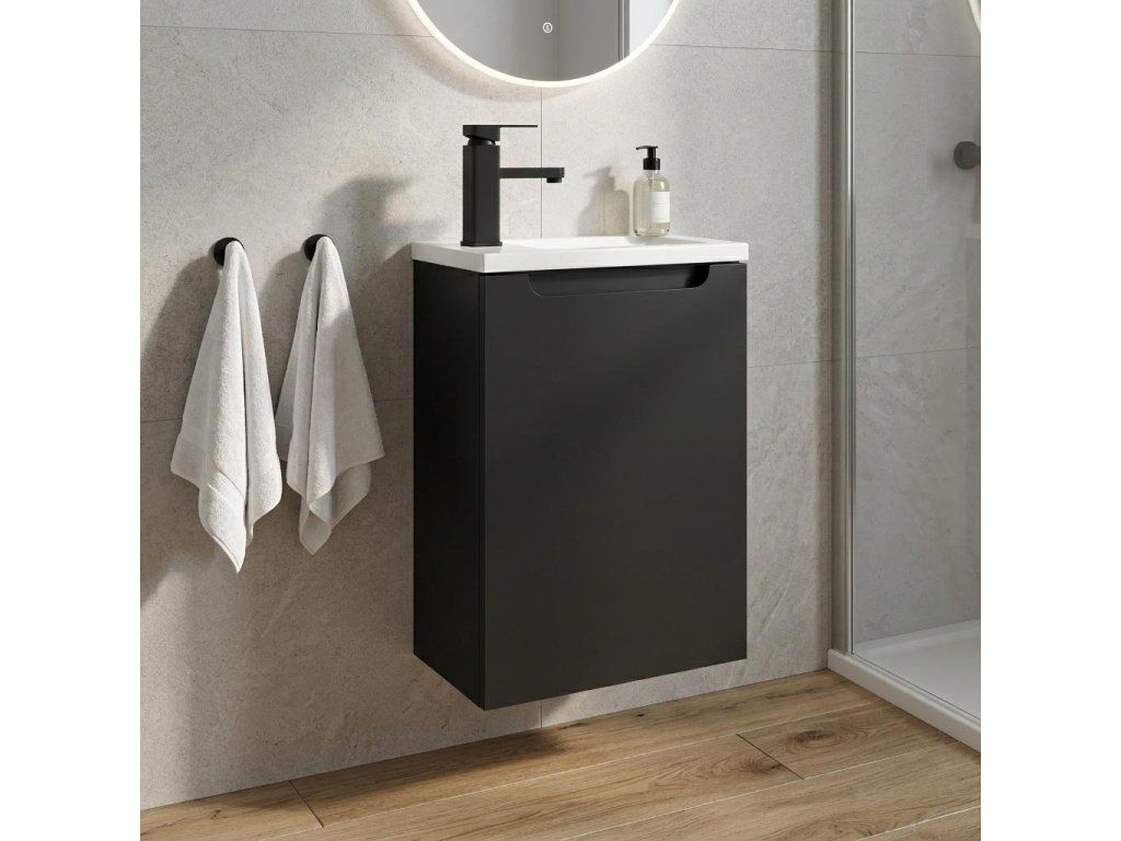 CERANO - Umyvadlová skříňka pro WC Sora - černá matná + umyvadlo z lit. mramoru - bílá matná - 40x57,5x22 cm