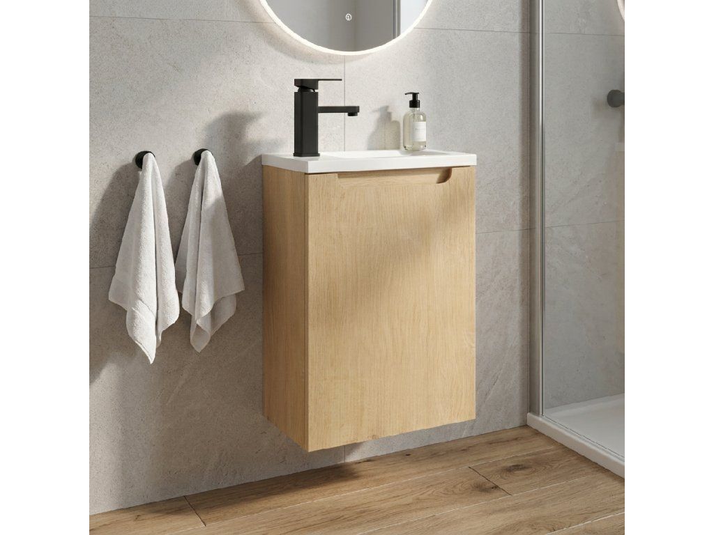 CERANO - Umyvadlová skříňka pro WC Sora - dub medový + umyvadlo z lit. mramoru - bílá matná - 40x57,5x22 cm