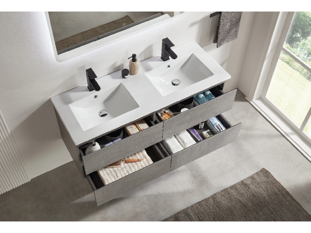 CERANO - Koupelnová skříňka pod umyvadlo Carole - betonově šedá - 138x48x45 cm