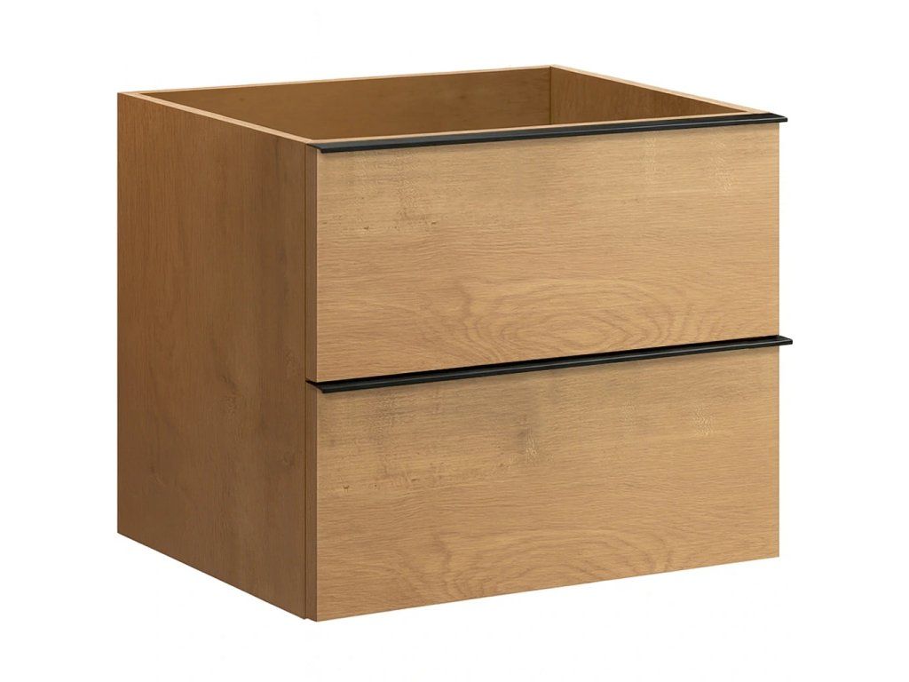 CERANO - Koupelnová skříňka pod umyvadlo s úchytkou Velora - dub medový, černá úchytka - 69x53x46,5 cm