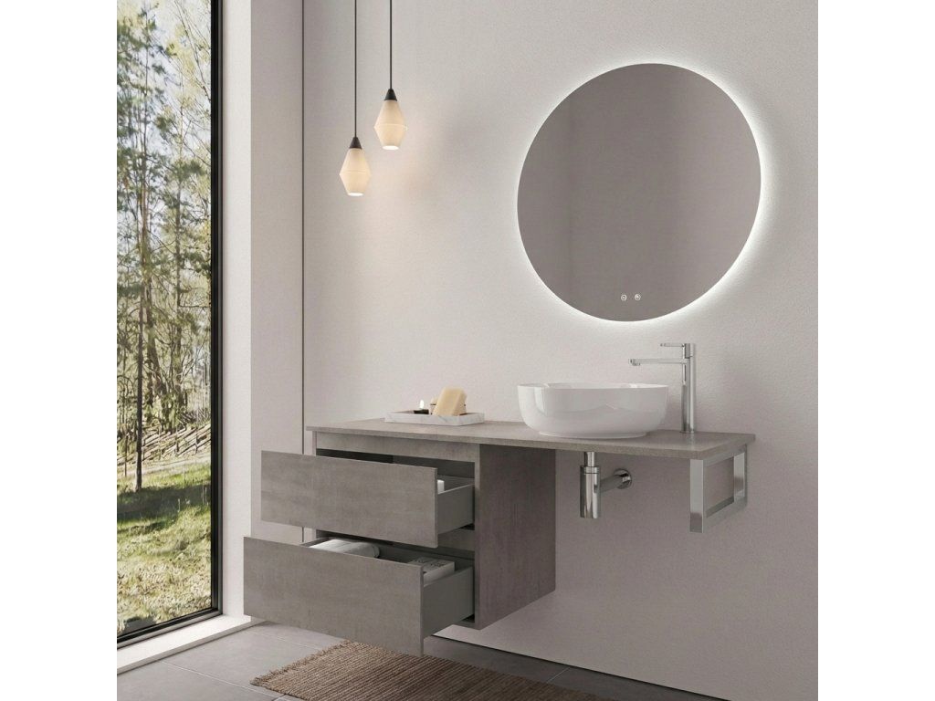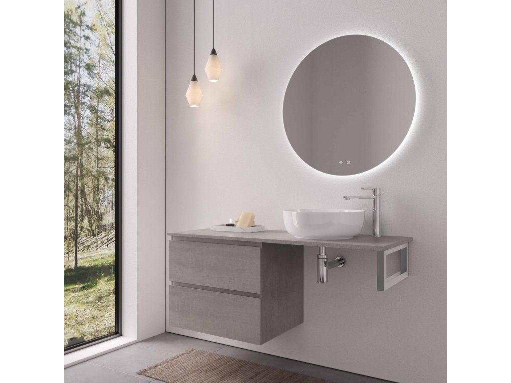 CERANO - Koupelnová skříňka Carole - betonově šedá + deska pod umyvadlo Navira Slim - 18 mm + konzole chrom - 140x46x54,8 cm